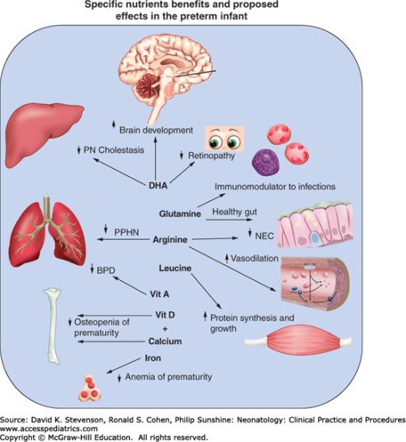 Apart from breast milk, other specific nutrients help aid newborn babies in their growth. Take a look at Figure 11-2 from Neonatology: Clinical Practice and Procedures below: