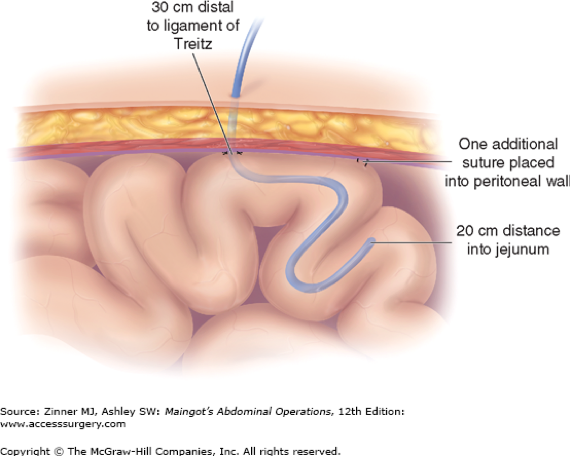 Feeding enterostomy: Enterostomy in the high jejunum may be utilized for feeding purposes in malnourished patients, either before or after major surgical procedures.