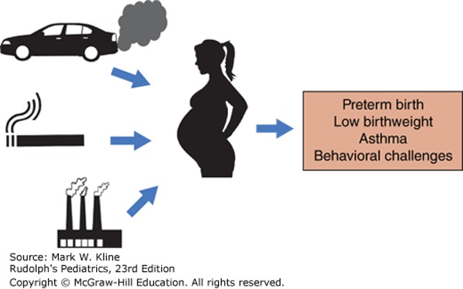 Chapter 172: Environmental Exposures and Health in Rudolph's Pediatrics, 23e stresses that the genome of developing fetuses are more susceptible to these environmental factors. Exposure to these pollutants pose a much higher risk to unborn infants (Figure 172-3). The chapter also elaborates on different toxic pollutants such as Cadmium and Polycyclic Aromatic Hydrocarbons.