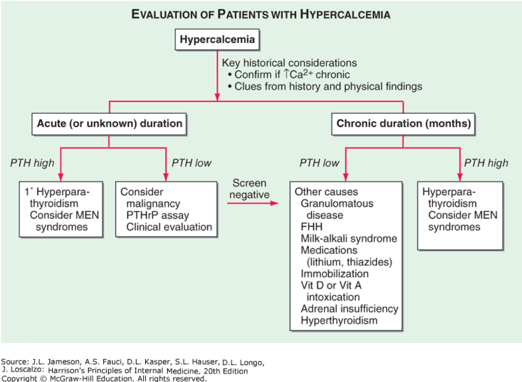 Here is another of Harrison's outstanding collection of algorithms to aid decision making and basic understanding in clinical medicine. This algorithm is focused on the evaluation of hypercalcemia, a common entity in the inpatient and outpatient settings.