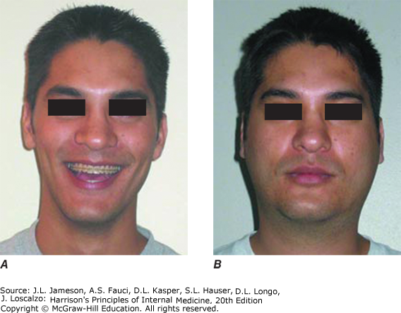 The same person before mumps acquisition (A) and on day 3 of acute bilateral parotitis (B). (Courtesy of patient C.M. From JD Shanley: The resurgence of mumps in young adults and adolescents. Cleve Clin J Med 74:42, 2007. Reprinted with permission. Copyright © 2007 Cleveland Clinic Foundation. All rights reserved.)