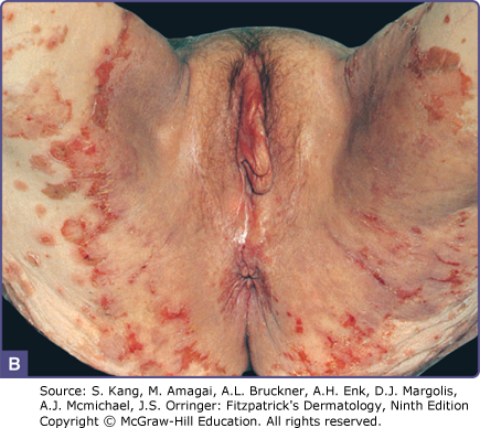 A. Acrodermatitis enteropathica is a rash typically located in the perioral, acral, and genital areas consisting of sharply demarcated scaly plaques. It is associated with zinc deficiency and early disease may occur in those with normal serum zinc levels; alkaline phosphatase is a helpful adjunctive test as it is a zinc-dependent enzyme and early deficiency may be detected by low levels of alkaline phosphatase in blood.