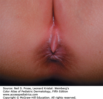 A 2-year-old girl is brought to the dermatologist for evaluation of a growth near her anus pictured below.
